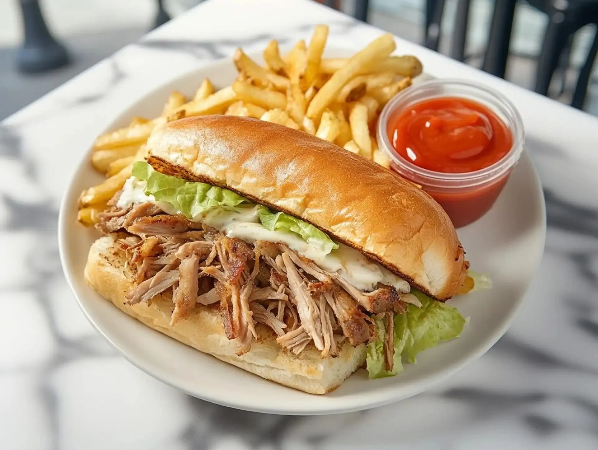 Slow-roasted, marinated pork shoulder, tender and flavorful with a crispy outer layer. A traditional Latin dish served with rice and beans.